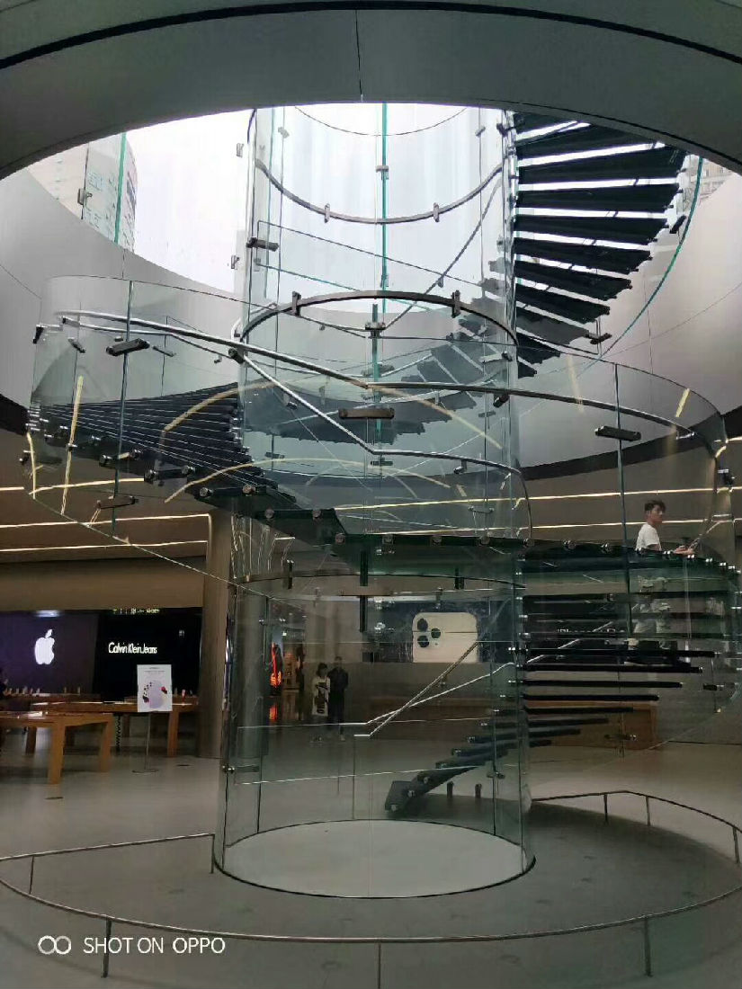 分享重庆金融中心苹果店全玻璃楼梯工程展示